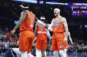 亚历山大:“总得有个平衡。在第四节的最后一攻,我迎着两个人投篮,仅仅是因为我感觉很好。所以这里总有个平衡。但我就是信任我的队友,我每天都能看到他们的努力,我看到了他们在篮球场上的能力。我看到了他们打得多努力,有多拼,我看到了他们做出的所有不被注意的微小贡献。当他们处于那些时刻,并且准备好去迎接那些时刻时,他们配得上这些机会。归根结底,如果他处于空位,他就会去投,就好像他之前连进了10个一样。这就是我欣赏卡鲁索的地方。每一次他得到投篮机会,他都会给自己一个进球的机会。他已经证明了这一点,他可能投丢了前几个,但今晚他投进了一个关键球。在去年的季后赛中,他投进了无数个关键球。他证明了他配得上这些时刻,他享受这些时刻,并带着十足的信心去迎接它们。所以他今晚投进这一球,我一点也不惊讶。”