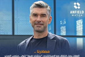 Ahmed Al-Ajlan透露,利雅得新月已经与理查德·休斯达成协议,后者将出任该俱乐部的体育总监,目前流程只剩签署合同。