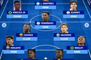 德转南美最贵阵:维尼修斯、劳塔罗、小蜘蛛三叉戟,蓝军双星在列