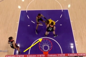 GIF-申京造艾顿进攻犯规 湖人挑战