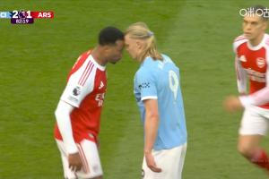 体育资讯4月20日讯 在曼城2-1战胜阿森纳的英超天王山之战中,哈兰德与加布里埃尔之间的对抗也成为了一大看点。比赛第83分钟,两名球员发生冲突,加布里埃尔推了哈兰德一把,随后两人开始顶牛,这本可以被红牌发下的行为最终被裁判出示一张黄牌了事,BBC发文谈到了这一判罚。