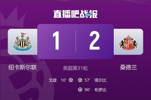 这场失利让纽卡被死敌桑德兰反超积分,黑猫43分排名第11,喜鹊军团42分排名第12。