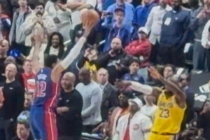 詹姆斯:“是的,我试图越过他,也要越过马克西(克莱伯)、杜伦、汤普森,把球传给卢卡,有很多人要越过,他用指尖碰到了球。”